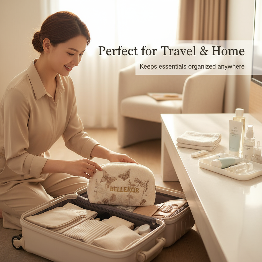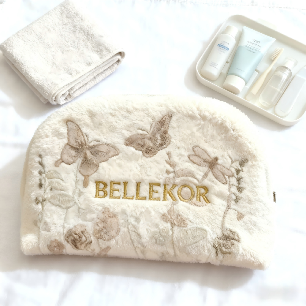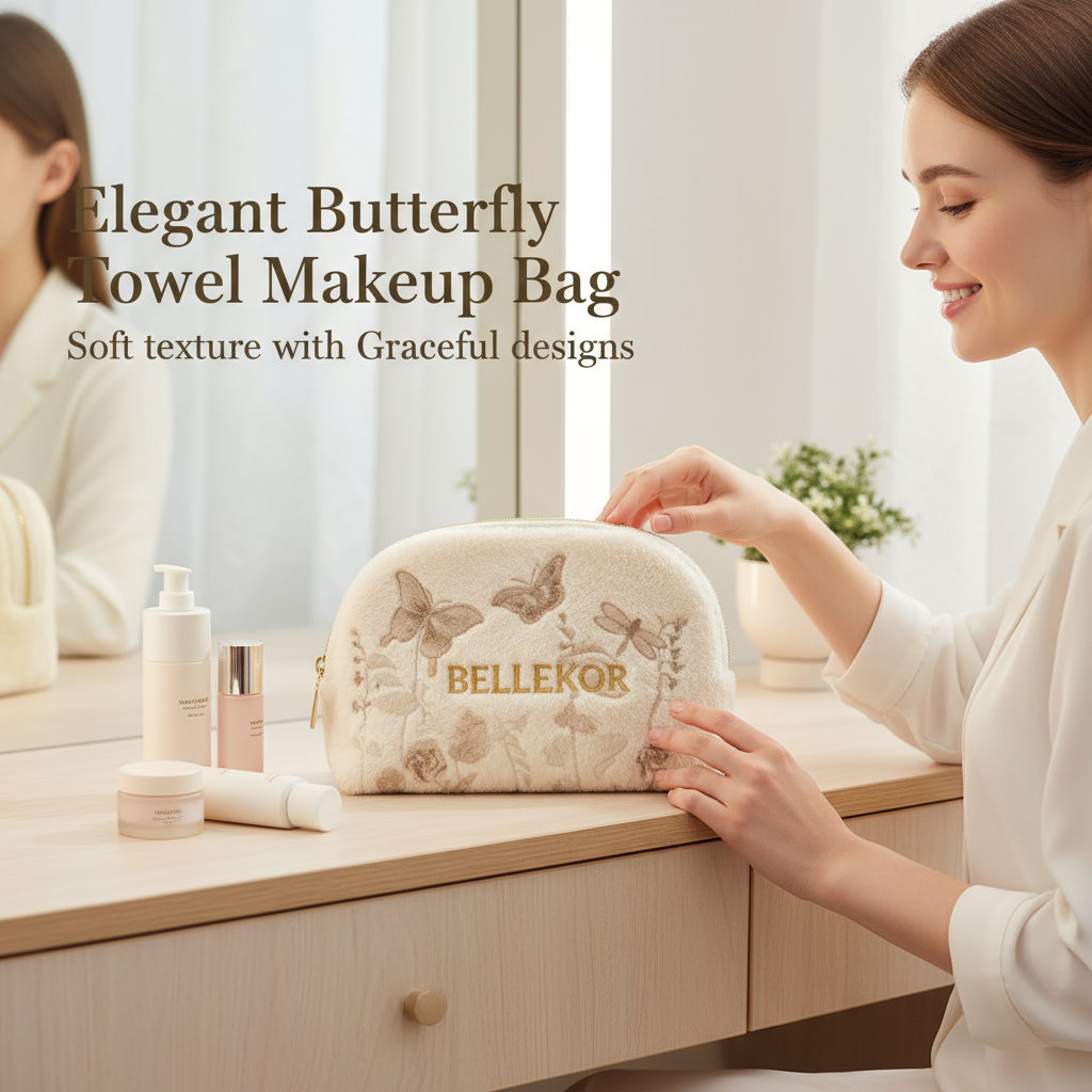 BELLEKOR butterfly-patterned towel makeup bag, specially designed for you who pursue comfort and beauty. Made of soft towel material and featuring exquisite butterfly patterns, it not only looks warm and cute but also has practical functions. It is an ideal choice for your daily use or travel.